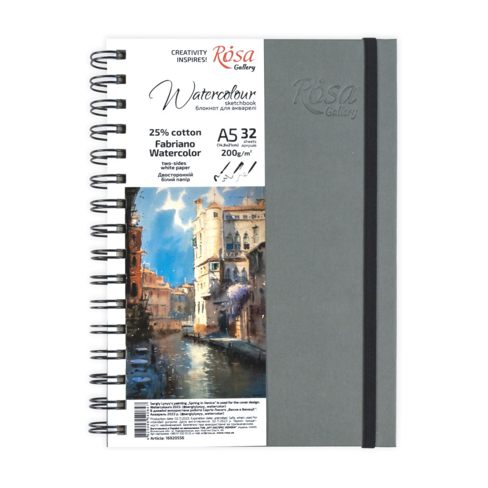 A5 Watercolor wirebound sketchbooks Watercolor by Fabriano, 200g/m2 – Anthracite