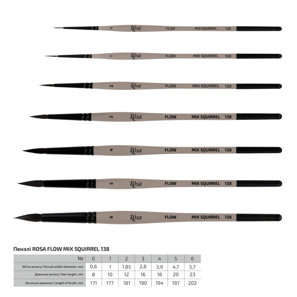 Squirrel mix Round Brush, FLOW 138, Short Handle Stærð 6